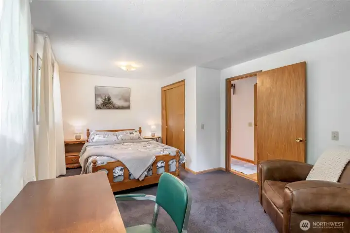 Your mountain basecamp awaits! This fully-furnished Packwood chalet sits on a large lot surrounded by national forest, alpine rivers, and some of the PNW's best outdoor recreation- White Pass Ski Area, Mt Rainier & The Goat Rocks Wilderness. Inside, the main level features an open living, dining & kitchen area with wide plank hardwoods, a wood-burning stove crackling at the heart of it all, a ductless mini split & double-pane vinyl windows for year-round comfort. Primary bedroom, 3/4 bath w/ laundry & a mudroom/storage room are also on the main floor - perfect for kicking off ski boots & hunkering down. Upstairs, two large bedrooms with new carpet & an added half bath sleeps multiple guests in comfort. Outside: fresh paint & a metal roof built to last. An oversized 3-car garage/shop offers serious storage & workspace for vehicles, skis & gear. The attached rec room is a perfect apres-ski hangout space. Corner lot with pull-through driveway accommodates RV's & large vehicles. STR friendly, with strong income potential- sleeps up to 8 people. High Valley HOA includes golf, pool, clubhouse & water. Nearby Packwood shops, breweries & dining. ~25 min to Mt. Rainier National Park, ~30 min to White Pass Ski Area, 2.5 hrs to Seattle or Portland. Fishing, hiking, skiing & mountain living — four seasons of adventure all out your front door!