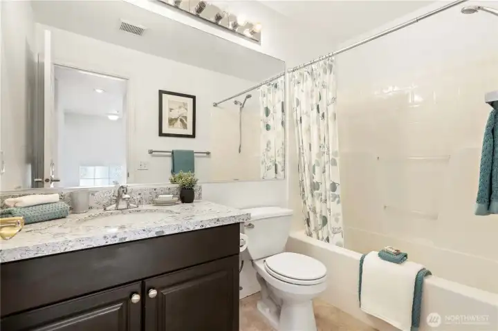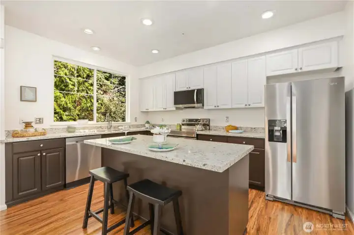 Welcome home to this beautifully maintained 3-bedroom, 2.25-bath end-unit townhome in Everett! Filled with natural light, this inviting home features comfortable in-floor radiant heat throughout and a spacious, open layout perfect for everyday living. The oversized primary suite offers vaulted ceilings and a private bath with dual sinks and generous counter space. The kitchen is designed for both function and style, featuring a breakfast bar and walk-in pantry, and flows seamlessly into the large family room with a cozy gas fireplace—ideal for relaxing or entertaining. The lower-level garage offers plenty of space for parking, storage, or a small workshop. Step into to your private deck overlooking a peaceful greenbelt—perfect for morning coffee or unwinding at the end of the day. Move-in ready and pet-friendly, this home is a fantastic opportunity for homeowners seeking comfort, space, and value. Conveniently located near Boeing, major highways, shopping, and everyday amenities.