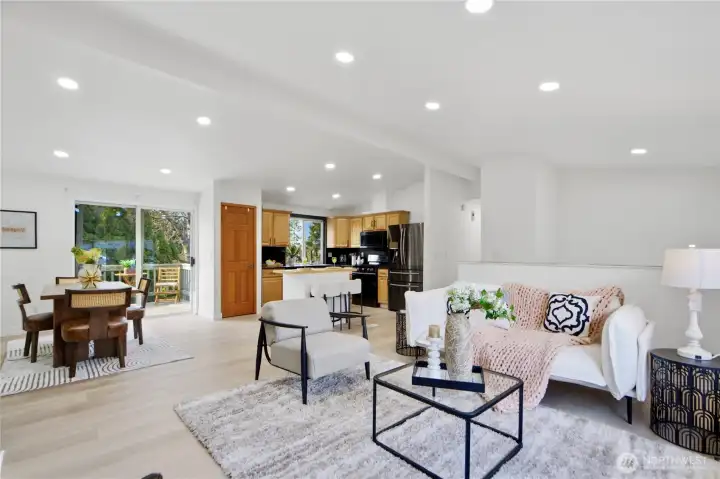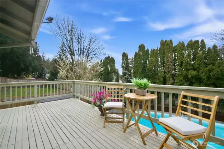 Beautiful Bothell home boasts soaring vaulted ceiling, ample natual lights and modern updates. Fresh interior paint throughout the home, new flooring across upper level & newer roof.The main level features open concept living room, a cozy dining room, stylish kitchen, primary ensuite and 2 comfortable bedrooms. Downstairs, a large family/bonus room provides flex space and 1 bedroom with a 3/4 bath. Expansive deck overlooking fully fenced backyard with a private pool for outdoor entertaining. Community offers May's Pond Park, Clubhouse w/pool and New playground, tennis courts and trails. Minutes from Mill Creek Town Center, shopping, schools and easy commute. With its inviting layout, spacious flat backyard, and prime location, this home presents an incredible opporutnity to enjoy the best of Bothell living.