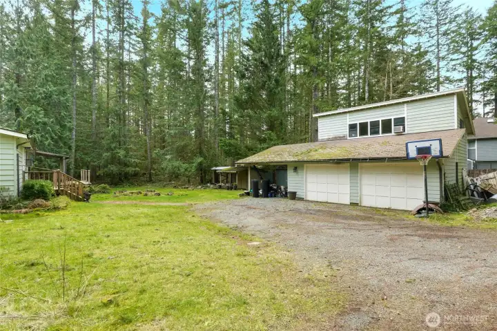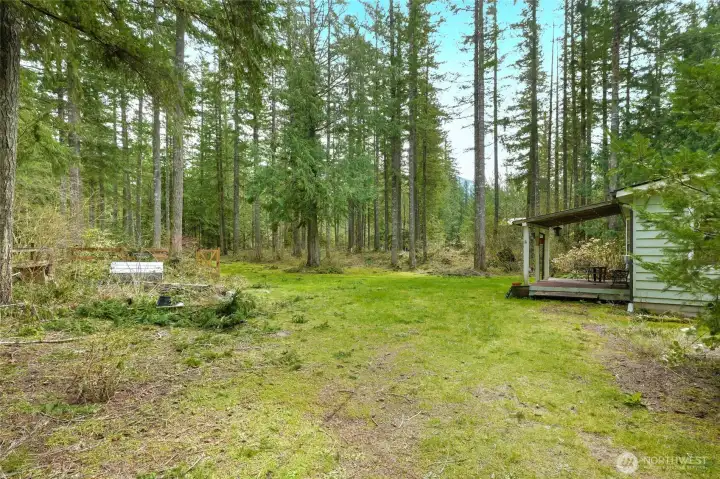 1.87 acres of level acreage with lawns and plenty of trees. Great for privacy and room for toys and pets. Lovely light and bright home with 3 bedrooms, and 2 full baths in 1250 square feet. Living room has vaulted ceilings, hardwood floors and a wood stove to keep it warm and cozy. Cute kitchen and dining room. Master bedroom with 2 closets, hardwood floors, and a large soaking tub. 2 covered decks. 2 car detached garage and carport with finished room above perfect for an office or craft room. North Bend's amazing outdoor opportunities close by. Minutes to hiking including the Mt Si, Mt Teneriffe and Little Si Trailheads. Walking distance to the community beach on the Middle Fork of the Snoqulamie River for fly fishing and kayaking. Easy drive to the Cascades for skiing, snowshoeing and all of your winter activities. Great schools!