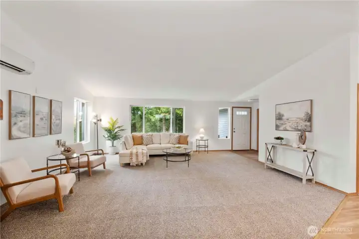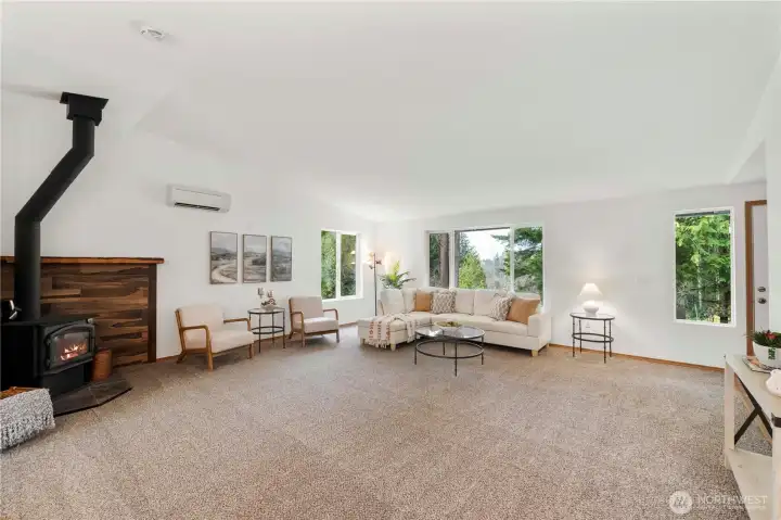 Enjoy privacy at this, 4-bed, 2 full bath, 2,112 SF rambler on 1.25 acres w/ a 24 X 28' detached shop! Vaulted living room includes a woodstove w/ tile surround. Huge open concept & vaulted kitchen-living area w/ bar height seating & adjacent eating area. Primary bedroom w/ walk-in closet & full, 5pc, primary bathroom w/ soaking tub. Good sized guest bedrooms. Full guest bath w/ dual vanity sinks. Big laundry room + mud room at the garage entrance. Heat pump/mini-split system w/ units in the kitchen, living, primary and in the 500+SF, 2-car attached garage (yes heat & AC in the garage!). Shop is set up perfectly for any project or storage needs w/ 2 bays, concrete floor & 125A power. Huge lot w/ RV/extra parking, woodshed + garden shed, fire pit entertaining area, apple + cherry trees and covered back patio. New roof in 2022 + Gutter Helmet gutter covers. New carpet & fresh interior paint in 2026. Private well. Wired for generator. Come see this one quick because it won't last!