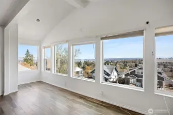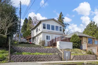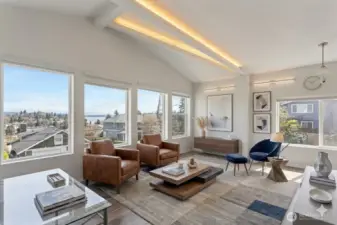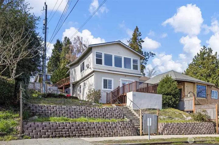 Commanding 180° views of Lake Washington, the Eastside skyline, and the Cascade Mountains set the stage for this rare Madison Valley offering. Blending lifestyle, flexibility, and long-term upside, this distinctive residence presents a unique opportunity for owner-occupants, investors, or multi-generational living.Configured as two private living spaces, each level enjoys its own entrance, kitchen, and in-unit laundry—creating exceptional versatility for supplemental income or private guest accommodations. The main level features 1 bedroom and 1.25 baths, while the lower level offers 2 bedrooms, 2 baths, a fireplace, and separate access. With alley access, a detached 1-car garage, and potential for an additional dwelling unit in place of the existing garage (buyer to verify), the property offers compelling future potential in one of Seattle’s most coveted neighborhoods. Just minutes from Madison Park, Capitol Hill, acclaimed dining, parks, and top educational institutions, this is a rare chance to secure iconic views and unmatched flexibility in an exceptional in-city setting.