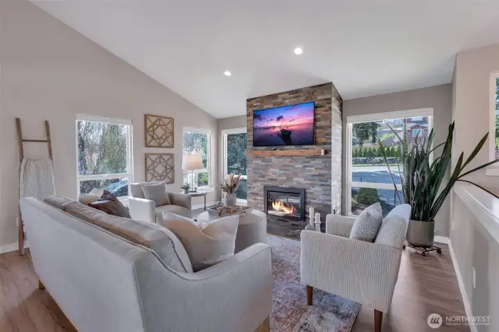 Stunning, meticulously maintained home just off Northshore Golf Course. Beautiful landscaping & fresh paint create standout curb appeal & welcome you home. The formal living room features newer LVP flooring, vaulted ceilings, abundant light & electric FP w/stone surround. The light-filled kitchen offers newer stainless appliances, quality cabinetry, tile backsplash & island w/eating bar overlooking the dining area. Enjoy exceptional mountain views from kitchen & decks. An add'l dining nook w/deck access creates seamless in/outdoor entertaining. The spacious primary suite includes private deck access, walk-in closet & spa-like ensuite w/custom tile work. 2 add'l bedrooms & updated full bath complete upper level. Downstairs, the oversized rec room offers flexibility w/wet bar, pellet stove, & access to the covered lower deck. This level also includes a den/office, bedroom, full bath & utility room w/abundant storage. Enjoy a private setting w/mountain & golf course views from dual-level decks, along w/terraced gardens, patio space & storage shed. The partially fenced yard offers flexibility for pets. True pride of ownership reflected in major updates including a 30-year roof (2016), high-efficiency furnace & A/C & updated electrical panel. Meticulously cared for & move-in ready, feels like new. Conveniently located near schools, parks, golf, stores, restaurants & beaches. Experience the comfort, quality & lifestyle this exceptional home offers!