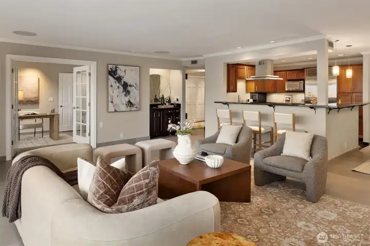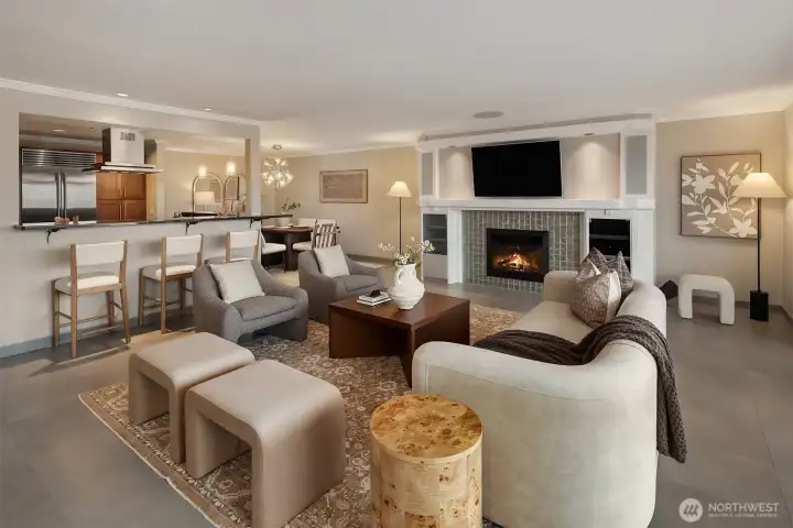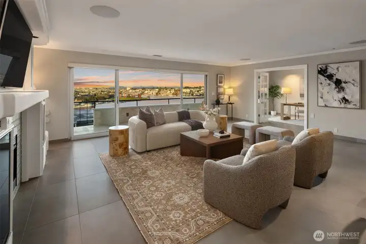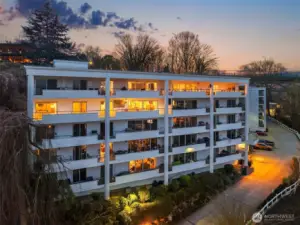 Welcome to Carleton House - where luxury, design, and iconic Seattle views converge. This exceptional 3-bedroom, 2-bath residence is defined by its showstopping 60-foot lanai, offering panoramic vistas of Lake Union, Gas Works Park, and the Cascade Mountains. From your private outdoor retreat, enjoy front-row seats to seaplanes, Duck Dodge sailboats, and dazzling Independence Day fireworks. Inside, no detail has been overlooked, with over $300K in upgrades thoughtfully transforming the home into a refined oasis. Premium Fleetwood windows with a lifetime warranty deliver exceptional soundproofing and seamless indoor-outdoor living, while white oak hardwood floors, radiant floor heating, and a built-in surround sound system elevate comfort and sophistication. A tranquil, auto-refill entry water feature sets a serene tone, while the open layout maximizes natural light and frames unforgettable views. Enjoy two dedicated parking spaces, additional storage, and a direct bus line to downtown at your doorstep. Located just across the bridge from Fremont and steps from the renowned Canlis, this home offers the perfect balance of peaceful retreat and vibrant city access. This is more than a condo - it’s a lifestyle defined by view, design, and effortless Seattle living.