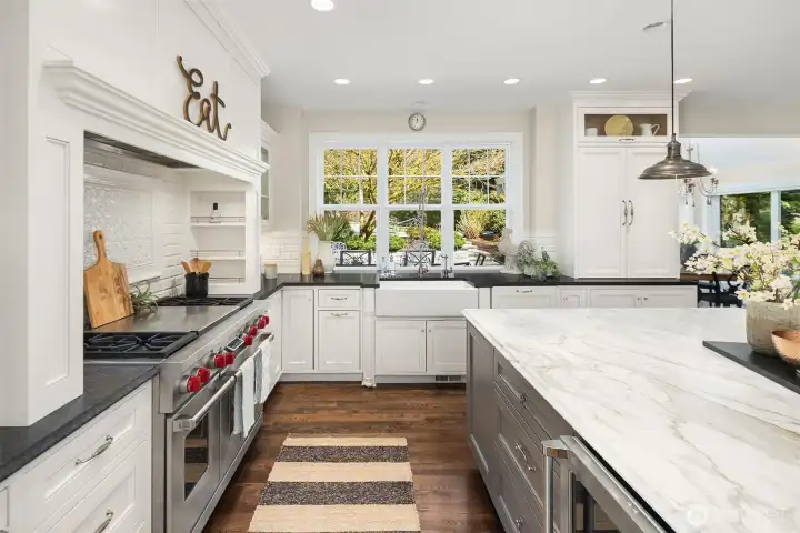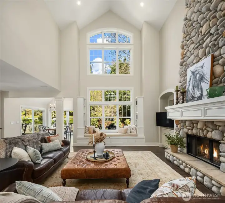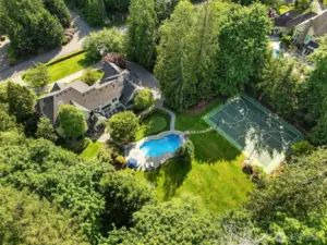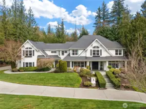 Timeless elegance awaits at Blakely Woods, set on a pristine 1.5-acre estate offering exceptional privacy and beautifully manicured grounds. This remarkable property features resort-style amenities including a sparkling in-ground pool, sport court, putting green, and expansive outdoor spaces designed for both relaxation and recreation. From the moment you enter, the home showcases impeccable craftsmanship and character. A dramatic clerestory entry welcomes you into interiors defined by rich hardwood flooring and extensive use of Calcutta Gold marble throughout. The gourmet kitchen is equipped with a premium Wolf range, an inviting eating nook, and flows seamlessly into a stunning great room highlighted by a floor-to-ceiling fireplace. The main level also includes a private den, formal living and dining rooms, a ¾ bath, and an additional powder room—perfect for both everyday living and entertaining. Upstairs, the luxurious primary suite offers a serene retreat with fireside seating, abundant natural light, and a spa-inspired five-piece marble bath with high-end finishes. Three additional bedrooms feature beautifully updated bathrooms, while a spacious recreation room and dedicated theater room provide endless opportunities for leisure and entertainment. This exceptional property truly offers something for everyone—refined living, modern comfort, and resort-like amenities all in one extraordinary home.
