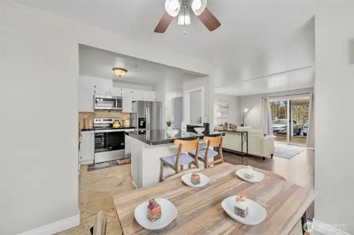 Hard to find turnkey 3BR/2BA condo located in the GATED & quiet Victoria Park community. This corner unit in a prime location, is one level (no stairs) easy & low-maintenance (HOA maintained) w/great investment potential (No rental cap)! Enjoy a light-filled 3BR/2BA with an open-concept design that seamlessly connects the living, dining & kitchen areas. The kitchen features granite counters, designer tile backsplash, SS appls & breakfast bar open to the dining & living room w/gas fireplace. Durable vinyl plank & Travertine floors throughout w/no carpet for both style & easy maintenance. The “King” sized primary suite features a large closet & private bath, plus 2 more “Queen”sized bedrooms, full bath & front load W/D. Sought after Mukilteo SD. Low maintenance & affordable with HOA covering W/S/G and handling all exterior maintenance & repairs so you can spend more time enjoying home & less time on upkeep. 2 nearby assigned parking spaces (one covered). New responsive HOA management. Pets ok w/restrictions. NO RENTAL CAP offers excellent flexibility for investors or future rental. Location offers exceptional convenience: ~10 min to Paine Field Airport & Boeing Everett, minutes to I 5 & Hwy 526, nearby transit & park and rides. Close to shopping, dining & groceries including Walmart, Costco & the Everett Mall. Whether you’re a first time buyer, downsizer, or investor, this move-in-ready home in a rapidly growing neighborhood is just waiting for you to call home.