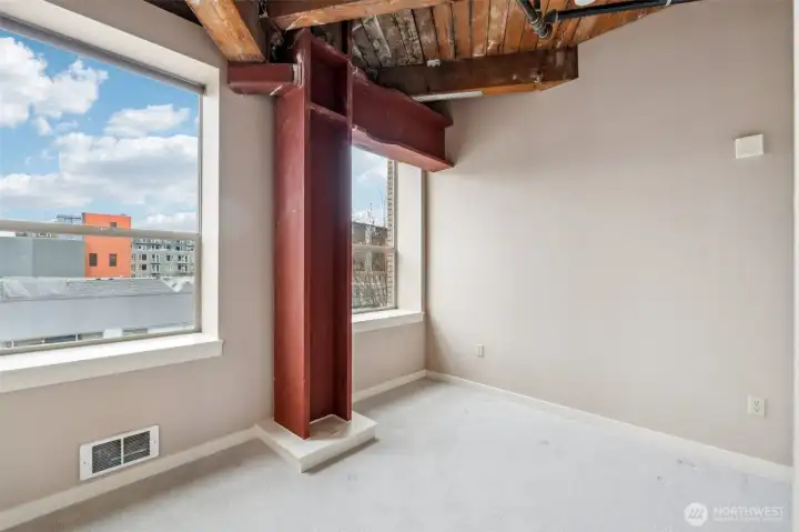 Experience the perfect blend of historic charm and modern living in this move-in ready southwest-facing corner loft at Trace, a thoughtfully converted 1919 warehouse. Ideally positioned in the vibrant Pike-Pine neighborhood on Capitol Hill, this home places you just moments from popular dining spots, nightlife, and everyday conveniences. Inside, the space is rich with character, featuring soaring ceilings, exposed brick, original car decking with wood beams, and visible structural elements that highlight its industrial heritage. Expansive windows invite in abundant natural light, beautifully illuminating the reclaimed Douglas fir floors and enhancing the open, airy feel throughout. The layout includes a true one-bedroom design, complete with a distinctive reclaimed elevator door that adds a unique architectural touch. This residence also includes the rare benefit of dedicated parking, offering added ease in a sought-after urban setting. With its blend of original details and modern comfort, this loft delivers a truly distinctive living experience.