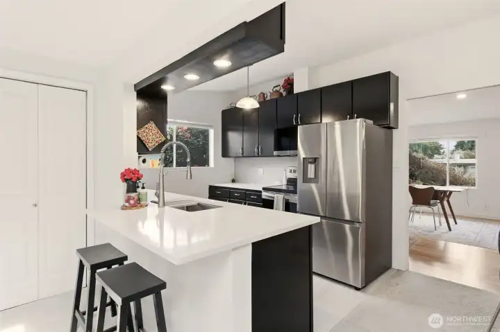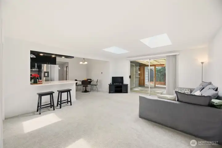 Mid Century design meets modern living in this beautifully refreshed 4-bedroom, 2-bath home. Thoughtfully updated with stylish finishes and a light-filled layout, this home offers a seamless blend of function and comfort. The spacious kitchen flows effortlessly into inviting living and dining areas—ideal for entertaining or everyday living. Enjoy a versatile floor plan with generous bedrooms, a well-appointed primary suite, and flexible spaces for a home office, media room, or gym. Large windows bring in abundant natural light, enhancing the open feel throughout. Step outside to a private setting with space to relax, garden, or host gatherings. A spacious detached garage and outdoor sunroom add flexibility and year-round enjoyment. Conveniently located near parks, schools, shopping, and commuter routes—this move-in ready home is one you don’t want to miss.