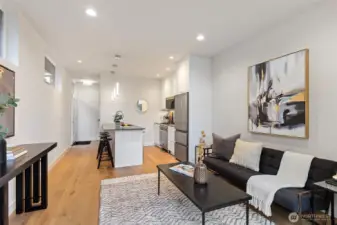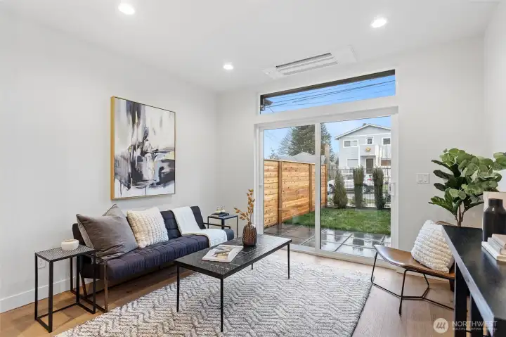 Discover elevated modern living in this beautifully crafted home ideally situated in the highly coveted Sunset Hills neighborhood by AM Northwest Homes! Thoughtfully designed with both style and functionality in mind, this residence offers 2 bedrooms and 2.25 baths, seamlessly blending contemporary design with everyday comfort. Soaring vaulted ceilings and expansive full-height windows fill the home with natural light, enhancing the bright, open layout and rich hardwood floors throughout. The stylish kitchen features premium Belmont cabinetry and quality finishes that blend form and function seamlessly and flows effortlessly into the main living area—perfect for entertaining or relaxing at home. Above it all, a spacious rooftop deck offers the ideal setting for outdoor dining, gathering with friends, or simply unwinding, complete with generous storage space. Additional highlights include A/C units in the bedrooms, convenient alley-access parking with EV charging, and a location just moments from Ballard’s vibrant shops, restaurants, and nightlife. This home offers the perfect balance of thoughtful design, comfort, and urban accessibility.