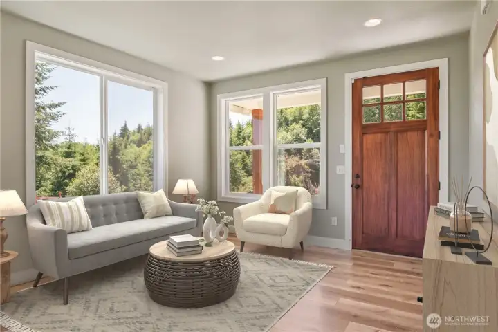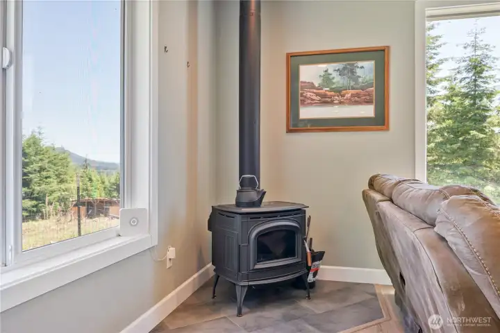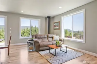 Modern Living meets natural beauty nestled on 13+ forested acres, offering privacy, space and style. Soaring windows flood the space with natural light and frame sweeping views. This newer construction home boasts of a grand kitchen has both beauty and function, featuring quartz countertops, stainless steel appliances, abundant storage and counter space. It flows into the dining area and family room, where a wood stove adds warmth and charm. The primary suite is a true retreat with a large walk-in closet and a spa-like bathroom. Two additional bedrooms and another full bathroom and half bath round out the thoughtfully designed floorplan. RV parking, space for a shop and a small pasture ready for your hobby farm dreams. Potential to subdivide (buyer to verify). This is Northwest living at its best!