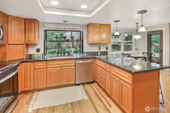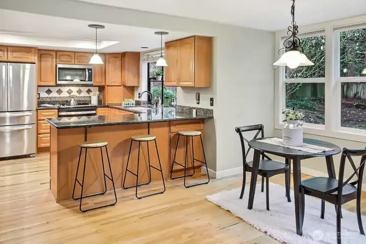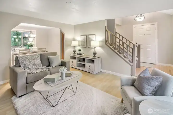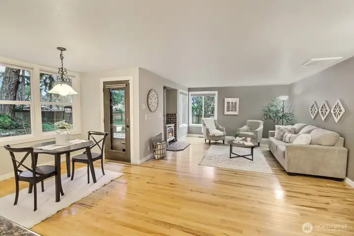 Get ready to move right into this well maintained home on a large, private lot! Here you will find a beautifully remodeled kitchen with granite counters, stainless appliances and garden window. Furnace & AC installed in 2022. The kitchen opens to a spacious family room with a gas log stove and the formal living room enjoys a gas fireplace. You will find 3 bedrooms upstairs including the primary with a private bath and walk-in closet, along with a huge bonus room with storage closet. The low maintenance front yard & woodsy, fenced backyard with patio & garden shed make this home a stand out. Walk to Kentlake High School and minutes from the Lake Sawyer public boat launch, Costco and Covington shopping!