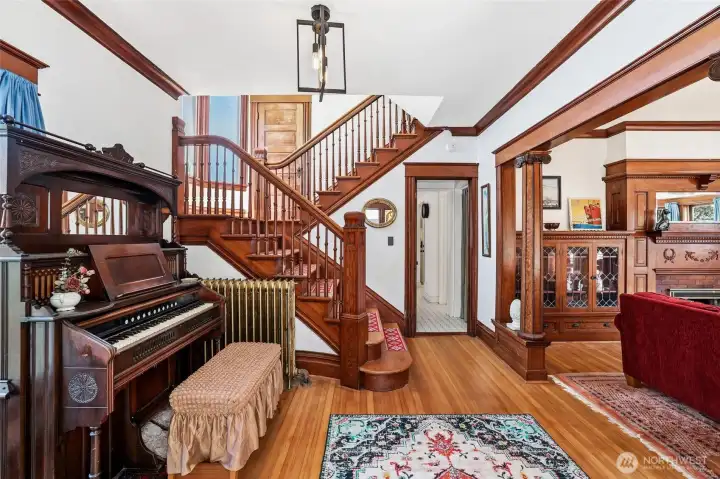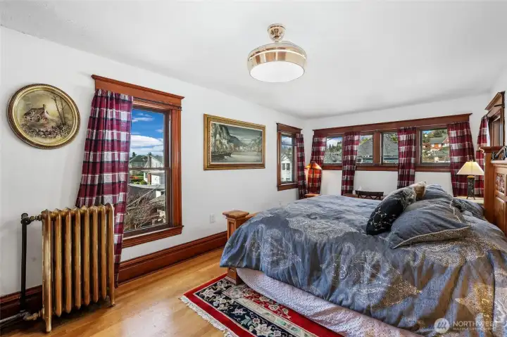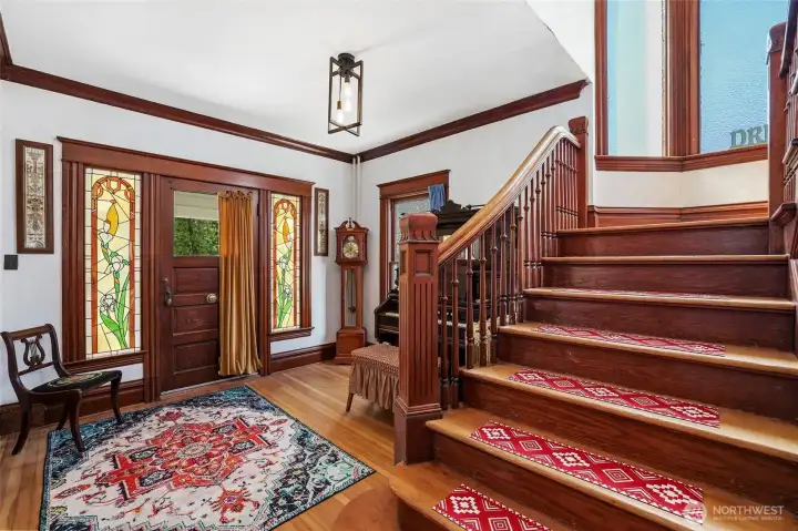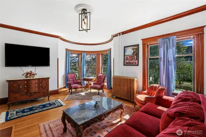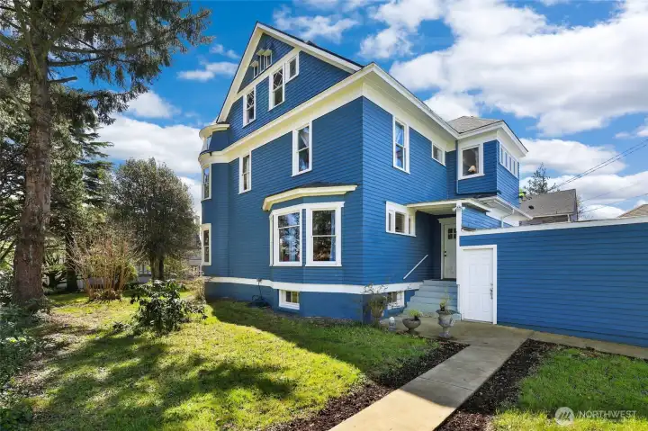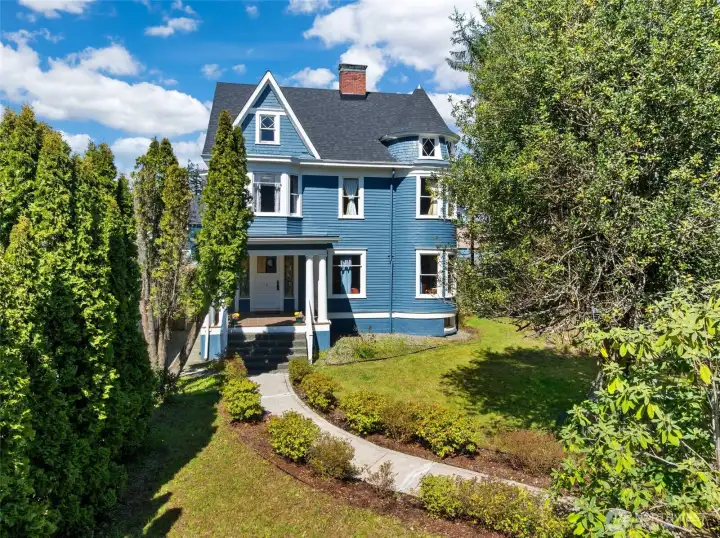 Beautifully preserved 1907 Victorian showcasing timeless craftsmanship and original architectural elements. This elegant 5-bedroom, 2.5-bath home spans three stories plus a partially finished basement and sits on a large corner lot with an attached two-car garage. Original wood doors, classic built-ins, and turn-of-the-century details blend seamlessly with updated kitchen, bathrooms, electrical, fixtures and basement renovations. Meticulously maintained and located outside the flood zone. Offered fully furnished, including a curated collection of antiques and décor—truly a rare opportunity to own a piece of history.