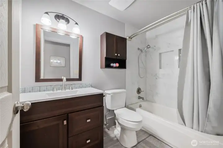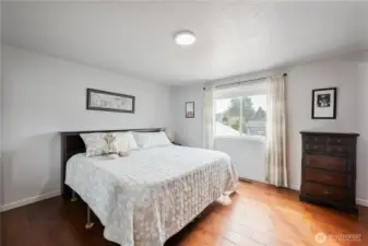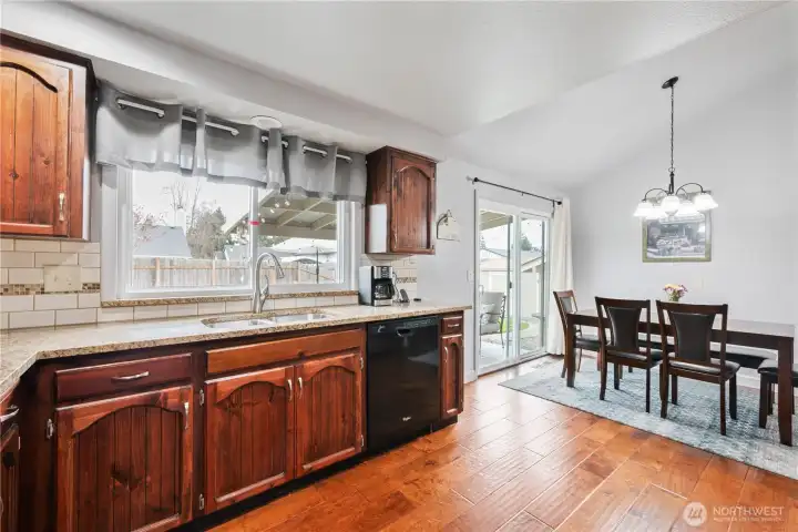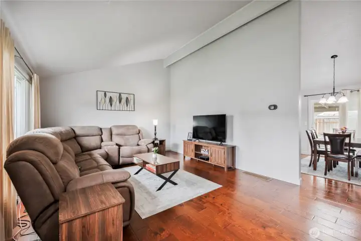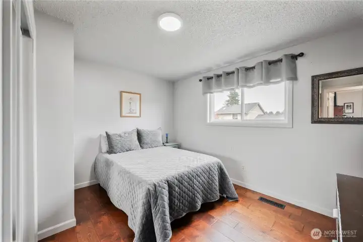 Desirable Lexington neighborhood with easy I-5 access. This beautifully maintained home features fresh interior and exterior paint and a vaulted ceiling for added openness. The main floor features engineered hardwoods and a kitchen with rich wood cabinets, newer black and stainless appliances, granite counters, and an undermount sink. Upstairs are two bedrooms, a full bath, and the Primary bedroom with an adjoining 3/4 bath. Downstairs provides a recreation room with wood fireplace and the utility room and half bath. All bathrooms are fully tiled and upgraded. An oversized garage adds space, and the fully fenced yard includes covered and open patios plus a shed. Durable metal roof adds long-term value. See it, Love it, Buy it!
