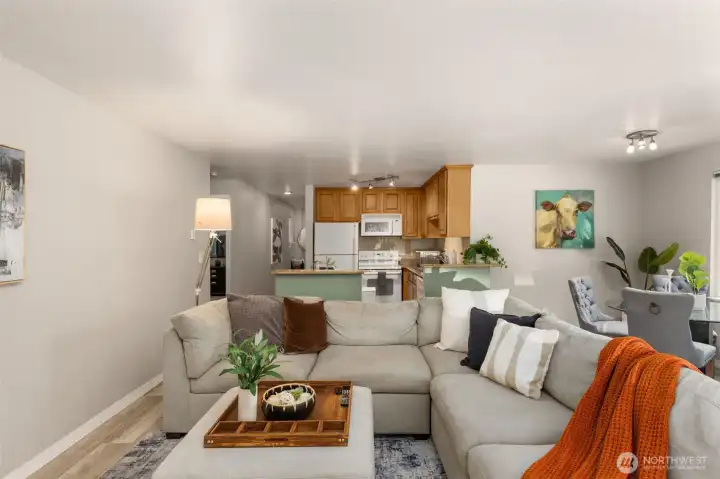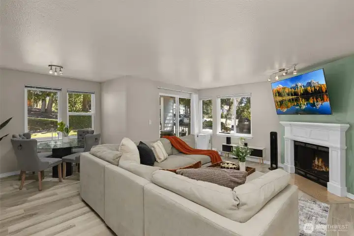 Welcome Home to this light and bright two bed, two bath corner unit with zero-step entry. This ground-floor unit offers easy access from two parking spots directly to your sliding glass door. This cozy condo features a kitchen with bar, open great room, luxury laminate flooring and a full-size in-unit laundry. The building was recently refreshed with new siding, paint and roof! Enjoy a fantastic community with green space, covered outdoor area, sport court, gym, and clubhouse. Pet-friendly and conveniently located near Thrasher's Corner shopping, parks, bus lines, and in the highly rated Northshore School District.