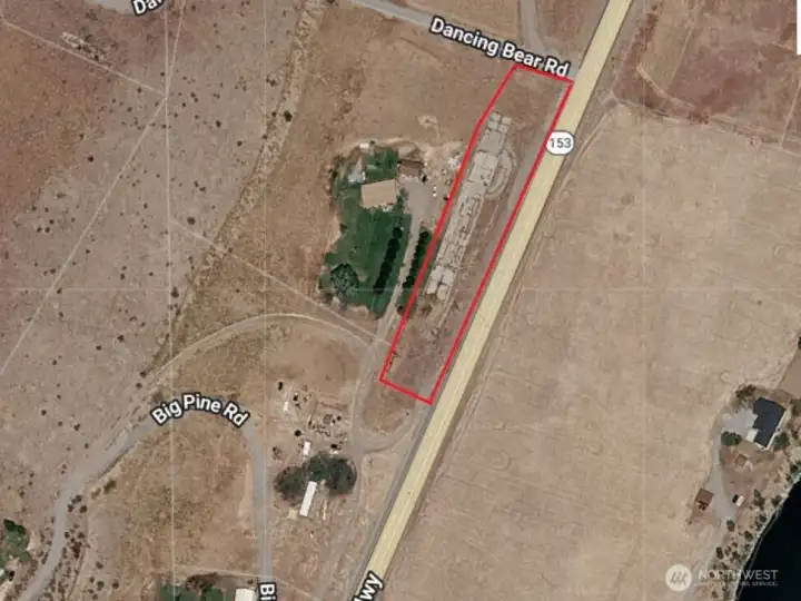 This Methow Valley property provides over 525 ft of frontage on highway 153 south of Libby Creek Rd near Carlton, WA. The foundation is that of a pre-existing Fruit shed. This location would be excellent for a variety of commercial uses; possibly self storage. Previous structure was connected to a well and septic.