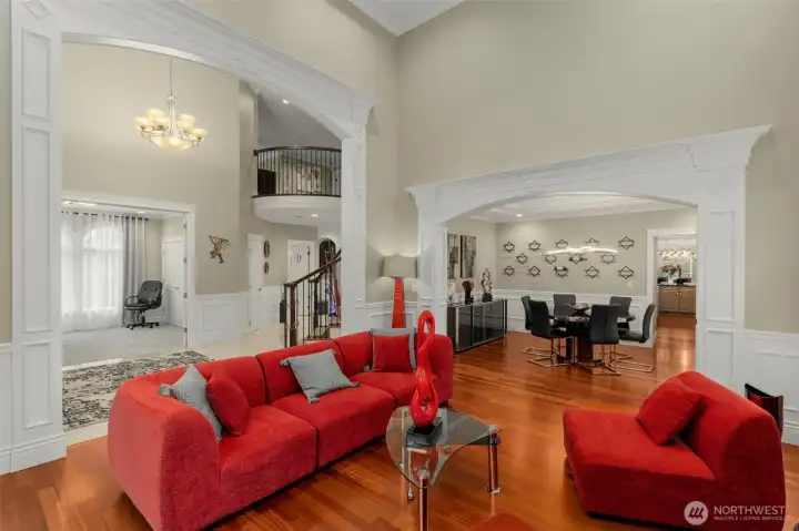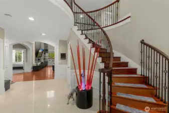 Exceptional Kirkland Estate — Singular Design, Unmatched Anywhere in the Area Searching for a truly distinctive home in Kirkland? Your search ends here. This custom 5-bedroom + Den residence is not a cookie-cutter build - its architectural design stands alone in Kirkland. A marble entryway sets a refined tone, framed by a stucco and cement plank exterior and mature landscaped grounds. Soaring cathedral ceilings, a grand staircase, and a loft overlooking the Great Room create an unforgettable first impression. Brazilian hardwood floors and custom millwork flow throughout. Open floor plan with Great Room, Living Room, and formal Dining Room. The chef's kitchen offers a center island, alder wood cabinetry, granite slab counters, and newer premium Thermador/Bosch appliances. Two full Master Suites - one on each level - purpose-built for multi-generational living; complete privacy on each floor. Upper and lower laundry. Covered slate deck and expansive patio for year-round entertaining. Systems recently updated: 50-year roof (2018), HVAC (2022), water heater (2018), west-facing windows (2019). EV charger, 3-car garage with 6-car driveway, central vacuum, 10,174 sqft flat lot. No HOA. Tech commuters: ~7 min to Google Kirkland, ~12 min to Microsoft Redmond, ~17 min to Meta & T-Mobile Bellevue, ~20 min to Amazon Bellevue. Minutes to Evergreen Hospital, Totem Lake, top-rated Lake Washington SD schools, beautiful parks, and Woodinville Wine Country.