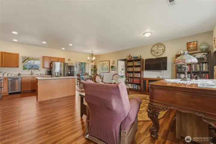 Enjoy easy single-level living in this thoughtfully designed home featuring an open floor plan and light-filled living spaces. The custom kitchen offers exceptional organization options, abundant cabinetry, and smart storage solutions, along with a convenient breakfast bar and adjoining dining area perfect for everyday living and entertaining. The well-appointed primary suite provides a peaceful retreat with a private ensuite bath highlighted by an accessible walk-in tub for added safety, comfort, and convenience. A desirable split bedroom floor plan enhances privacy, making the layout ideal for guests, hobbies, or a home office. Step outside to a fully fenced backyard that is a true gardener’s delight, complete with raised beds, a welcoming patio, and a covered breezeway for relaxing or outdoor dining. An oversized double-car garage adds valuable storage and workspace flexibility. Combining comfort, accessibility, and inviting indoor-outdoor living, this home offers a wonderful opportunity to enjoy practical single-level living with space to garden, gather, and unwind.