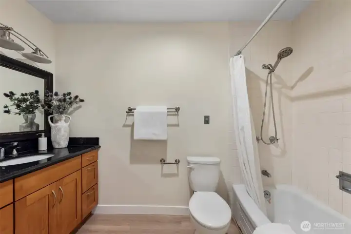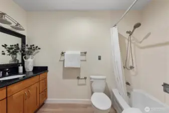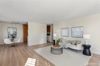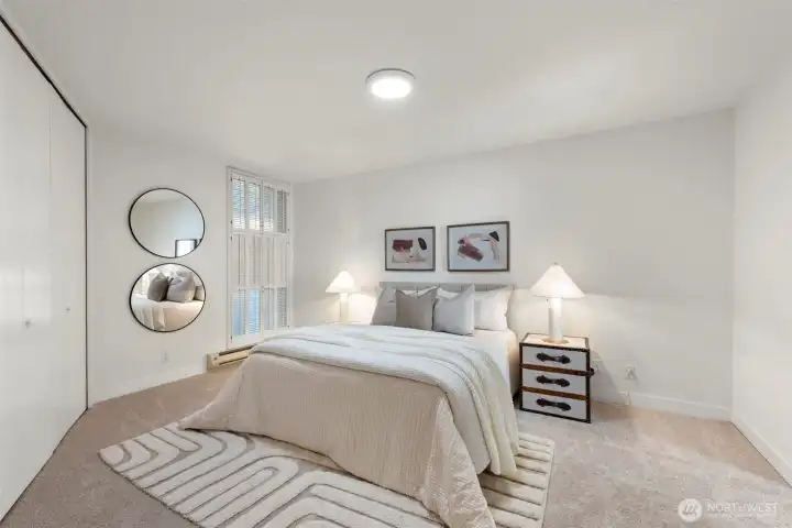 Bright and spacious unit with a west-facing deck and wall of windows capturing views of the Space Needle, city skyline, and glimpses of ships on Elliott Bay. Excellent 85 Walk Score—just steps to restaurants, shops, and Seattle Center. Interior highlights include custom louvered wood blinds, sleek black granite counters, stainless steel appliances, hardwood laminate floors, fresh paint, and new living room carpet. Extra storage located on the deck. Well-maintained building offers elevator and lobby access plus an additional exterior entrance. One assigned parking space included. HOA dues cover water, sewer, garbage, and property taxes.