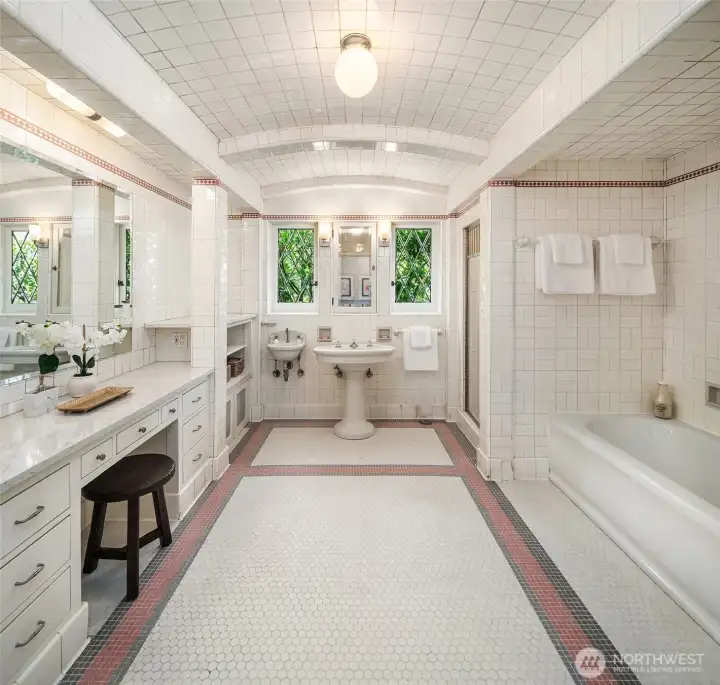 These are the landmark addresses, where those who buy, stay (44 years, in this case). But it's not just the address. You can feel a good house. One that knows how to shelter its people, hosting them with warmth and quiet solidity through all the seasons of their lives. Outside, this stately 1908 Tudor Revival sits squarely on its over-sized lot on one of Capitol Hill's finest legacy streets. Inside, surprises await. Remarkably light and airy, the home has generous rooms, large windows and extensive, finely painted woodwork. At the front, original formal day rooms and a grand entry, with an elegant staircase rising to the 2nd floor mezzanine. To the rear, the home's casual side emerges, with a big, open kitchen/family room ringed with windows opening onto the private rear patio and gardens. Upstairs, find views of Lake Washington and the Cascades, large corner bedrooms, a vintage barrel-vaulted, fully tiled primary bath, skylit family lounge and several bonus spaces. The unfinished basement offers acres of dry storage, laundry and potential. An enormous 2-car garage with 11' ceilings, flooded with natural light, will easily accommodate vehicles, kayaks and projects. “Now this is the kind of house you want,” our pickiest inspector kept saying. Built solid, it was top-of-the-line when new, made to last, and well maintained ever since...with many quality updates along the way. It's a structure worthy of the investments that will take it another 120 years into the future.