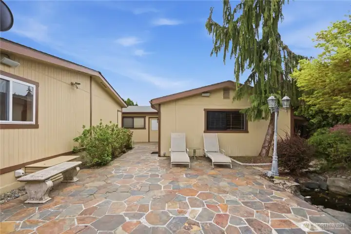 The best home available in the exclusive 55+ Rio Verde Community! This immaculate 3Bed/2Bath home features a spacious 2,000SF ft floor plan, offering comfort and style at every turn. Huge Primary Bedroom with walk-In closet & 5 Piece Bathroom. Oversized 2-car Garage is a versatile space w/ a workshop, cabinets, lots of storage & can even accommodate up to 4 cars. Third Bedroom, office, flex space in the detached Casita! The private, fully-fenced lot is beautifully landscaped complete with a tranquil fountain, koi pond, fountain, flagstone patio & 2 driveways. Easy access to conveniences, restaurants, transit, freeways. Air conditioned. Plenty of off-street parking with 2 driveways.