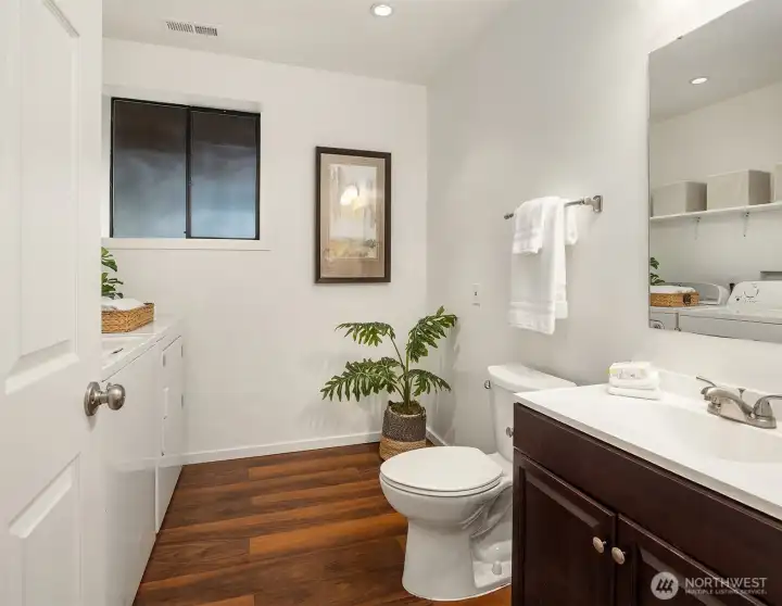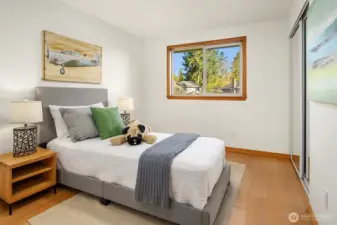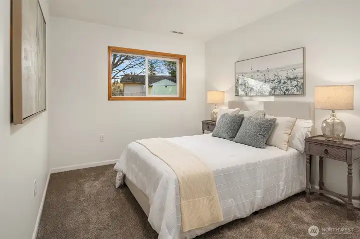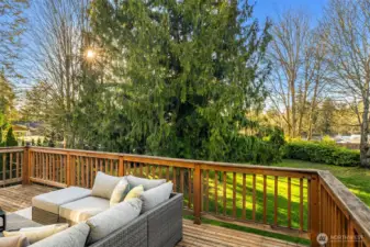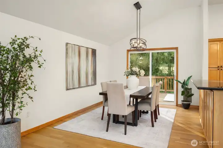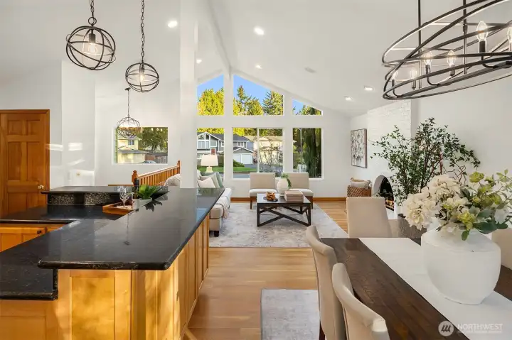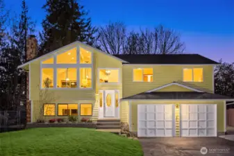 Tucked quietly at the end of a cul-de-sac on nearly a third of an acre, a vibrant green lawn welcomes you home to a space that feels both open and private. Inside, vaulted ceilings and a wall of windows draw the outside in, with natural light dancing across hardwood floors. The living area is anchored by an elevated brick fireplace and hearth, balanced by the clean vertical lines of the great room. The kitchen integrates seamlessly, wrapped in warm wood tones, with a natural flow that keeps everyone connected. It is the perfect space for entertaining and where conversations flow easily around the countertop bar. Step onto the deck and the experience shifts. Sunlight filters through the trees as the space opens to an expansive level backyard with room to play, gather, or simply unwind. The downstairs offers a relaxed gathering space, with a fireplace, access to the lower patio, a fourth bedroom, office, and bath and laundry. Extensively updated and thoughtfully maintained, the home reflects a true move-in ready experience. Improvements include a full interior repaint, refinished hardwood floors, new carpeting, remodeled primary and secondary bathrooms, updated lighting, fresh exterior paint, and a new 30-year composite roof. The work has been done, so you can move in and begin living. Everyday conveniences are abundant and nearby. Easy access to I-5 / 405 and the light rail for easy and convenient for commuting. Close to downtown Edmonds waterfront shops and dining.
