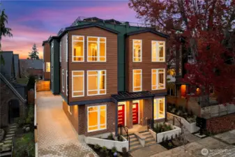 Up To $27,000 Credit With Preferred Lender! Discover Verona by MRN Homes—a rare luxury offering in the heart of Wallingford. This light-filled 3-bedroom residence delivers refined modern design, thoughtful details, and generous spaces that live beautifully day to day. The chef’s kitchen shines with premium Fisher & Paykel appliances, custom Belmont cabinetry & bold matte-black accents, while the luxe primary suite offers a true spa-like escape with expansive walk-in closet and large bath. A bonus flex space adds valuable versatility—ideal for a home office, gym, playroom or media lounge—while two additional lower-level bedrooms provide comfortable accommodations for guests or extended living. The standout feature is the extra-large rooftop deck, offering room to entertain, relax or garden w/sweeping views and unforgettable sunsets. EV-ready parking and a private fenced yard complete the package. An unbeatable location at the heart of Wallingford just minutes to beloved cafés, eateries & shops, plus easy access to Woodland Park, the Zoo & Green Lake. Enjoy seamless commuting with quick access to Hwy 99 & I-5, and close proximity to Ballard, UW, U Village, Green Lake, and Fremont—city living at its absolute best.