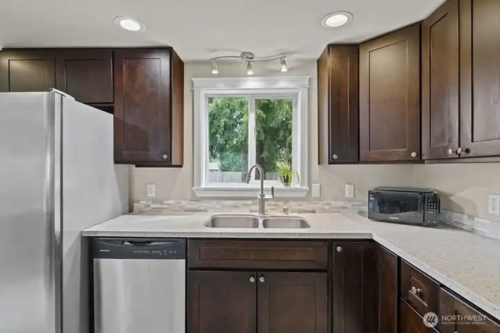This beautiful single story home is waiting for you! Contemporary updates and conveniently located on spacious .35 ac lot creates options galore. This home features 3 bedroom 2 bathrooms and a spacious den/flex room. Conveniently located in Tumwater, close to state offices, farmers market, shops, restaurants & Pioneer Park. Original hardwoods & sleek tile floors lead past wood brick fireplace to a beautiful kitchen with stainless steel appliances and granite-counter tops. Main suite with 2 closets & full granite-counter top bathroom. Keep cool w/efficient heat pump. This property has room for RV/boat parking and it also features a covered patio.