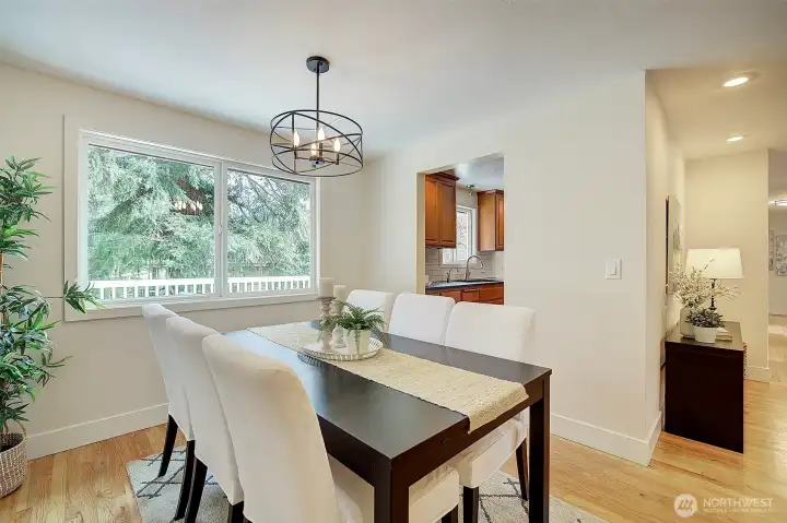 Beautiful, corner lot home in quiet Maplewood is ready to delight you! With charming curb appeal, and perfectly sited, this home welcomes you with gorgeous and gleaming hardwood floors in a spacious living and dining room. Sunny and bright, with a cozy fireplace, this living room invites relaxation. Flow seamlessly to dining area, for easy entertaining or holiday hosting! Chef’s kitchen features storage galore, including built in pantry, lovely granite countertops and a Wolfe gas range to make your culinary dreams come true! Sliding doors entice you to the oversized deck for dining al fresco or a summer BBQ! Primary bedroom features private 3/4 bathroom. Main level hosts 2nd bedroom, with mini split, 3rd bedroom and full guest bathroom! Lower level, daylit great room features fireplace, dining area, efficient kitchenette and opens to huge, covered patio! Boasting a private entrance, (and lockable door to upper level) this space could be perfect for a home office, multi-generational living, rental income or Airbnb! Level, fenced lot provides tons of space for your four-legged family member or your garden plans! Fresh paint, newly refinished hardwoods, 2 car garage and just minutes to Edmonds ferries, beaches and restaurants … you’ve found your perfect match! Welcome home!