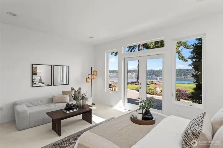 From the northern waters of Colvos Passage, to Pt. Defiance and the Narrows, to the silhouette of Mt. Rainier, this incredible 180-degree panorama is the dynamic backdrop of your forever home. It embraces natural light from morning to evening, with creative windows and soaring ceilings; specially designed to enhance the acoustics for its resident concert pianist. Anchored by Brazilian Tigerwood floors, gallery-white walls, and a one-of-a-kind hand-fabricated metal railing that acts as a sculptural centerpiece, this single-owner custom is a refreshing departure from cookie cutter. Nearly every room is oriented toward the Sound, with direct deck or patio access from each bedroom, kitchen, and living space. It’s a home that invites the salt air and the scenery inside at every turn along with the coveted layout of the primary suite, office, and laundry on the main. The grounds are impeccably manicured featuring expansive patios for soaking in the views and sun. While the setting feels like a private bluffside retreat, the "Reid Drive advantage" is the unmatched location—just minutes from the Narrows Bridge, new Pen Met rec center, and to the heart of downtown Gig Harbor. With a 3-car garage and a 600 SF unfinished lower level for future expansion, this is a sophisticated, casually luxurious residence seeking its next chapter.