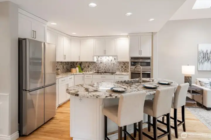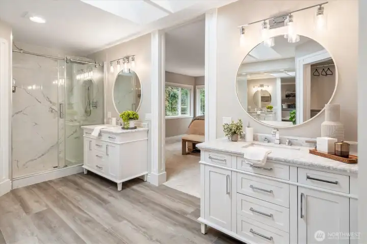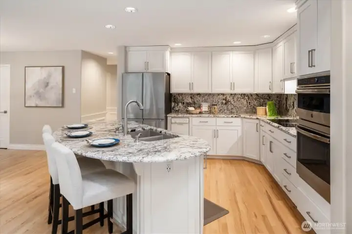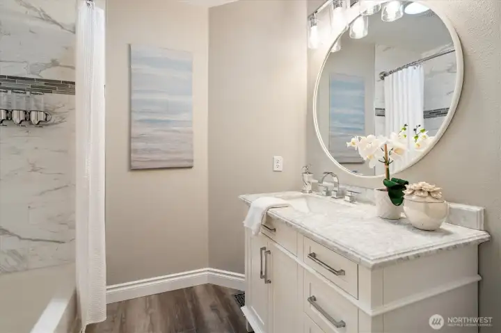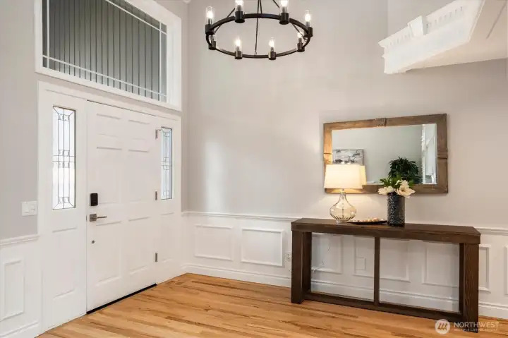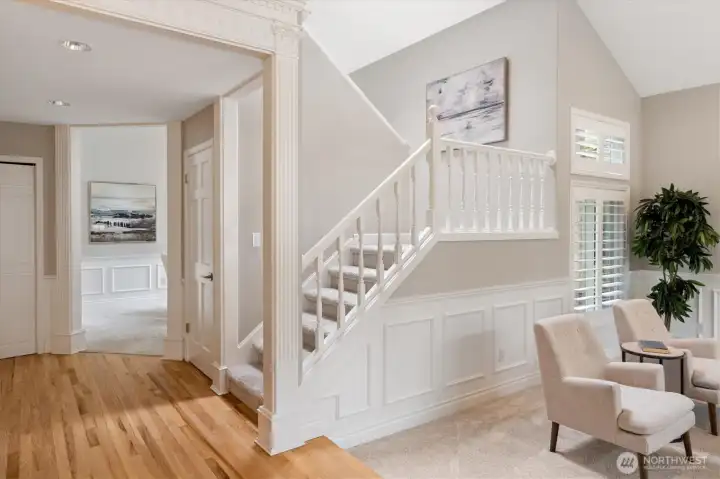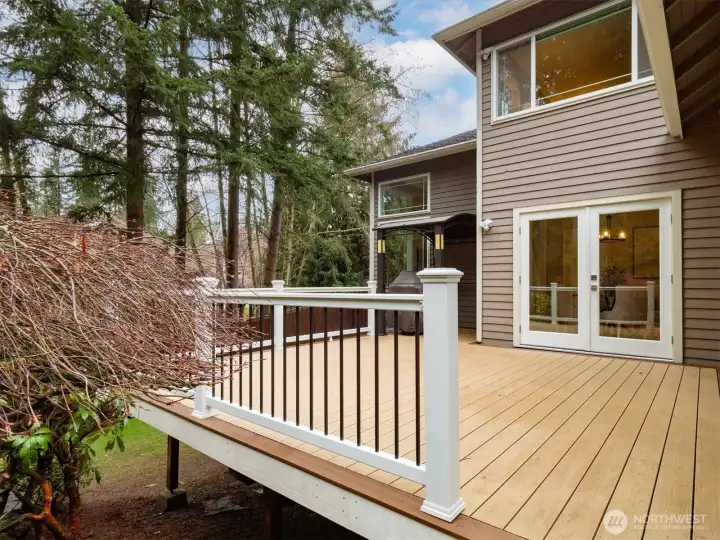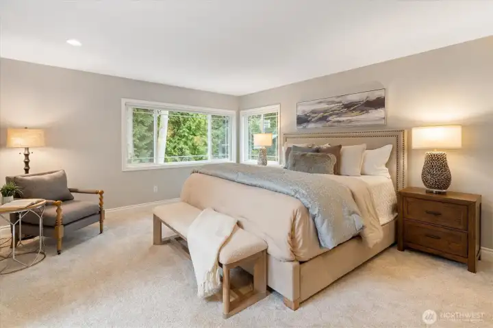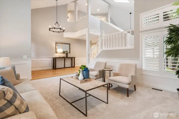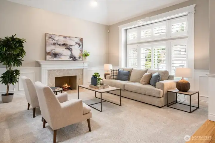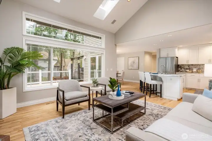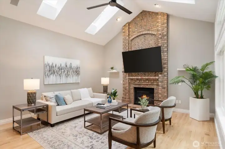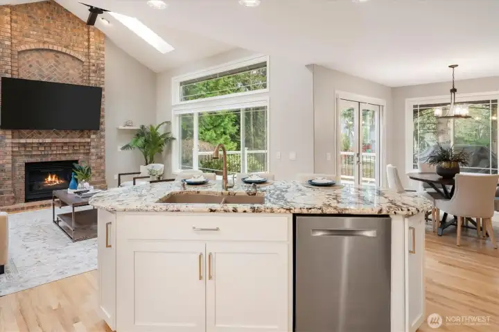Welcome to this beautifully updated home in sought-after Mukilteo! Thoughtfully maintained and extensively renovated, this 5-bedroom gem offers the perfect blend of comfort, style, and function. The main living areas impress with soaring vaulted ceilings and skylights, stunning millwork, gleaming hardwood floors refinished and extended throughout. Cozy up in front of the fireplaces in the living room and family room. Custom shutters and blinds add a polished, cohesive finish to every room. The updated kitchen features freshly painted cabinetry, updated appliances, and granite countertops — ideal for everyday living and entertaining. All bathrooms have been fully remodeled with modern finishes. The primary suite boasts custom built-in closets, and new carpet flows through the bedrooms. Step outside to a lush, beautifully landscaped yard with mature plantings, colorful flowers, and a peaceful greenbelt backdrop — your own private retreat. The freshly replaced deck is perfect for entertaining or relaxing. Additional updates include a newer water heater, refreshed central vacuum system, and new interior paint throughout. Located in a wonderful neighborhood with sidewalks, this home is just minutes from Mukilteo’s waterfront, top-rated schools, Boeing, and easy ferry and freeway access. Move-in ready and truly turn-key — don’t miss this one!