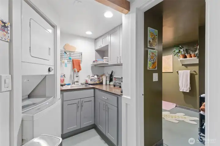South Park income-producing property featuring a beautifully updated Northwest Contemporary home with a basement apartment and detached DADU, offering excellent potential for rental income. The main home showcases vaulted ceilings with exposed beams, warm wood flooring, and abundant natural light. The chef’s kitchen is designed for both style and function with quartz countertops, stainless appliances, farmhouse sink, live-edge shelving, pantry, breakfast bar, and a huge quartz center island, along with skylights that create a bright, inviting space perfect for entertaining. Flexible living includes a main floor bedroom or office, full bath, and main-level laundry. Upstairs you’ll find a spacious primary suite with a walk-in closet and relaxing bathroom with jetted tub. The property also features two income-producing units: a lower-level apartment with kitchen, living room, den, private laundry and bath, plus a detached industrial-style DADU with loft, kitchen, bath and private laundry. Outdoor spaces include a walkout deck, private patio, and thoughtfully designed garden seating areas, along with RV parking, carport, and parking for up to five vehicles. Located in a central South Park location, this rare opportunity is ideal for investors or buyers seeking rental income to offset their mortgage. All three units—the main home, basement apartment, and DADU—are currently rented through August, providing immediate income potential.
