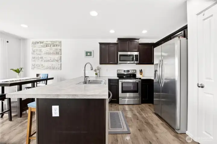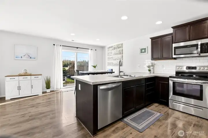 Spread out in bright, well-cared-for home situated in quiet, and coveted cul-de-sac in the convenient Suncrest Farms neighborhood. Enjoy this immaculately maintained property featuring a comfortable open-concept living space, a main-floor den/office, A/C and mint-condition LVP flooring throughout the entire home - ideal for those w/ pets or allergies. Great room is anchored by new, custom built-ins and a modern fireplace, leading out to a sunny, landscaped, private backyard. Kitchen offers S/S appliances, pantry food storage, ample counter space, and the ability to easily host sunset meals on the patio or BBQ steps from your kitchen. Mature, landscaped backyard is summer-ready for badminton, slip-in-slides or pet play. Wonderful layout upstairs features a convenient laundry room and 4 bedrooms, including the primary suite with an en-suite bathroom and a generous walk-in closet. Minutes from walking trails, Granite Falls restaurants and shops, schools and backdoor access to hiking in the gorgeous Cascade foothills. Plus! Quick access to HWY 92 for commuting. Pre-inspected, turn-key and ready for new owners to enjoy this outstanding neighborhood!