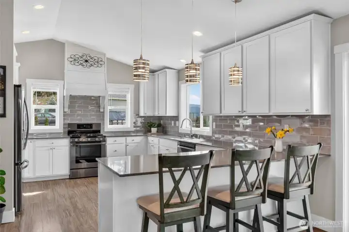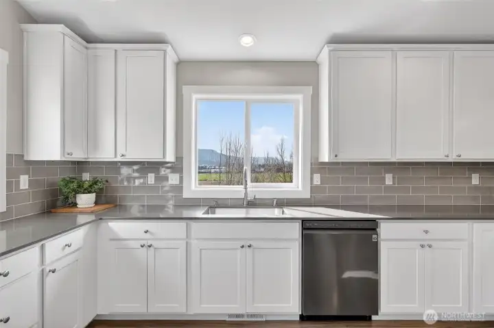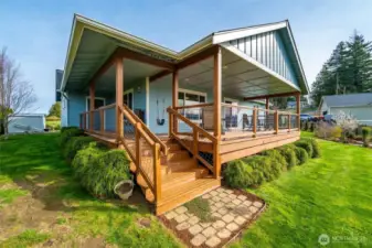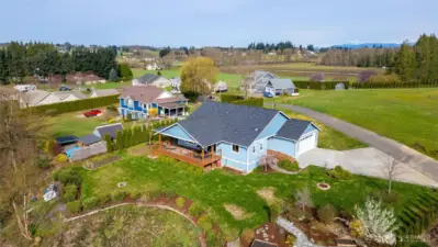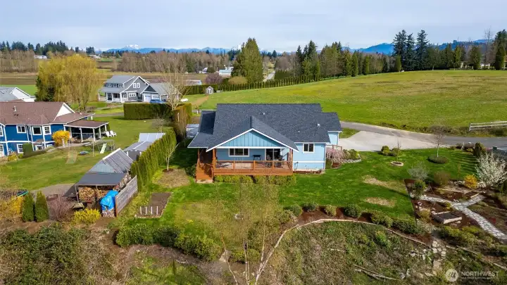 Exceptional newer home on the highly desirable, south facing ridge above Sumas (well out of flood plain). Views from almost every window include sunrise over Mount Baker, sunsets over gorgeous Nooksack Valley farmlands, and views north to Canadian peaks. This one-level home is trimmed out in the timeless craftsman fashion and is in immaculate condition. With a functional open-concept floorplan and a large kitchen that has quartz counters, lots of storage, soft close cabinetry, and gas range. Another approx. 300 sft of south facing, covered deck area feels like an additionally living space as well. Just shy of 1 acre, the property is accessible both from the main entrance off Ridgeview and also has lower access off Kneuman Rd, with potential for a future detached garage or shop from this driveway? Sitting on the back deck, enjoying your manicured gardens, bird watching, gazing off into the endless views... this tranquil setting is one you will never want to leave. But when you do need to head out, it's only 15 mins to Lynden, 30 mins to Bellingham, and just 12 mins to Costco in Abbotsford, Canada!