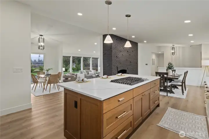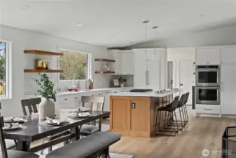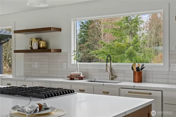 Stunning high-end rambler in Hobart set on 4.65 acres of flat usable land including two tax parcels—a rare find. This 3-bedroom 2.25-bath home was thoughtfully remodeled top to bottom by the sellers with quality + long-term living in mind showcasing high-end finishes throughout. Recent updates include new interior/ exterior paint LVP flooring windows panel-ready appliances seamlessly integrated into the kitchen a walk-in tile shower with glass surround marble countertops in primary soapstone countertops in the laundry/mudroom + herringbone brick accents in the laundry + mudroom. Major systems have been updated w/ new drywall electrical plumbing roof water heater HVAC driveway siding + septic system bringing the home fully up to todays standards. The kitchen is a true centerpiece featuring quartz countertops all-wood cabinetry a double oven gas range + a tasteful blend of open + closed shelving for both style + functionality. Natural light pours in from every angle enhanced by the new windows highlighting the open layout + creating a warm inviting atmosphere. Cozy up by the wood-burning fireplace while taking in the peaceful surroundings territorial views + glimpses of the mountains—this is the perfect blend of comfort quality + NW living. Enjoy the park just across the street quick access to Highway 18 + being part of the highly regarded Tahoma School District making this location ideal for families + commuters alike. RV hookups with water adds an extra layer of convenience.