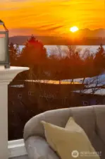 Dreamy sunsets sparkle off the lake from this top floor Houghton condo. Warm and inviting finishes draw you in to a sunlit great room. The family room with gas fireplace, dining room and beautifully appointed chef's kitchen all enjoy large picture windows that flood the interior with natural light. Spacious view deck for grilling or relaxing. Luxurious primary with a large walk-in closet and ensuite 5-piece bath featuring freestanding tub and tile shower surround with frameless glass. Second bedroom with walk-in closet and adjacent full bath. Spacious utility room includes full size washer & dryer, linen closet & hanging storage. Newer, efficient hydronic heat pump system & central A/C. Tandem garage with parking for 2, plus massive storage room. Quick and easy freeway access and convenient nearby transit. Blocks to Google & Met Market and just minutes to the Kirkland waterfront or downtown Bellevue. A rare opportunity within this boutique community for those seeking comfort, convenience and location!