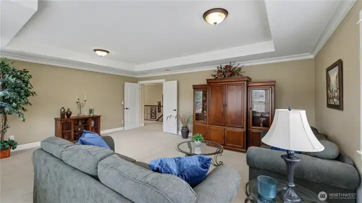Welcome to The Reserve at Lake Sawyer! This beautifully maintained home offers space, comfort, and thoughtful design throughout. The bright, open great room flows seamlessly into the dining area, creating an inviting setting for everyday living and gatherings. The kitchen features an eating area and connects easily to the living room with a gas fireplace. A main-level office adds flexibility for work or hobbies. Large windows fill the home with natural light, while A/C ensures year-round comfort. Upstairs, the primary suite offers a peaceful retreat, complete with a gas fireplace, two closets, and a well-appointed 5-piece bathroom. Three additional bedrooms provide flexibility for a variety of needs, and the spacious, light-filled bonus room offers the perfect setting for relaxing, entertaining, or everyday living. Outside, enjoy a large backyard with a covered patio—ideal for outdoor dining or unwinding. The expansive 1,400 sq ft 4-car garage provides exceptional space for parking, storage, or projects. This home combines generous living areas with practical features, all in a desirable Black Diamond location.