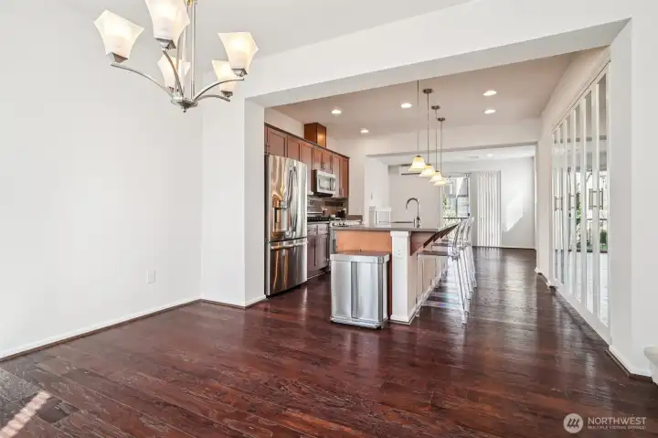 Light-filled end-unit townhome in a prime location near Silver Lake and everyday amenities. Enjoy an open main level layout with partial views of Silver Lake, spacious kitchen with quartz counters, stainless steel appliances, a large island with eating bar, custom floor-to-ceiling pantry and a dedicated dining area. The inviting living room is anchored by a cozy fireplace and opens to a balcony overlooking the community. Thoughtful layout offers a lower-level bedroom with a full bath, ideal for guests or flexible use. Upstairs includes a spacious primary suite with en suite bath, an additional bedroom, full bath, laundry, and a versatile bonus space perfect for a home office, workout area, or creative studio. Alley access leads to an attached 2-car garage, providing convenience and added privacy.