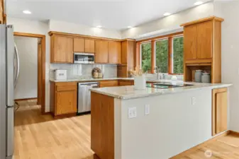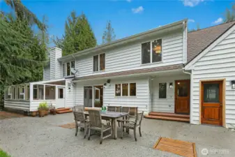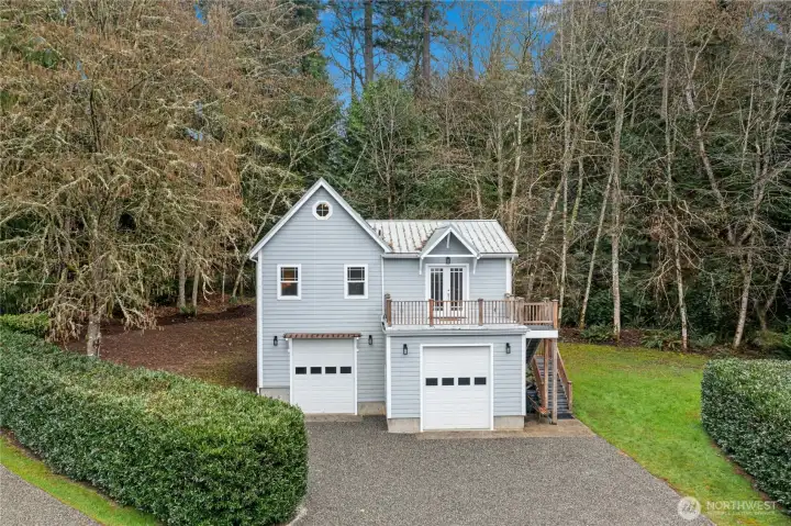 Exceptional John Schold-built Bainbridge Island property in a stunning, park-like setting. Gorgeous hardwoods run throughout the main home, with a main floor perfectly designed for entertaining and everyday living. The kitchen opens to a large patio, creating seamless indoor-outdoor flow for gatherings and summer dining, while the spacious sunroom offers the perfect place to enjoy the beauty of the Pacific Northwest through the winter months. A heated 3-car garage provides ample space, and the private pickleball court makes this property truly special. The detached permitted ADU adds incredible flexibility with a 2-car garage, 768 square feet of bright living space, and a large deck. Ideal for guests, extended living, or possible rental income. A rare blend of craftsmanship, versatility, and island lifestyle in a beautiful natural setting. Short distance to Battle Point Park, Lynwood Center, Winslow Way, trails and more.