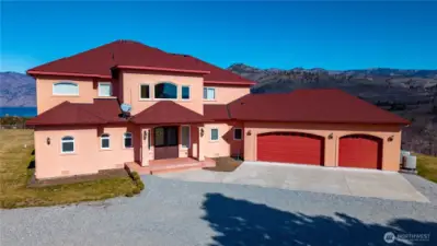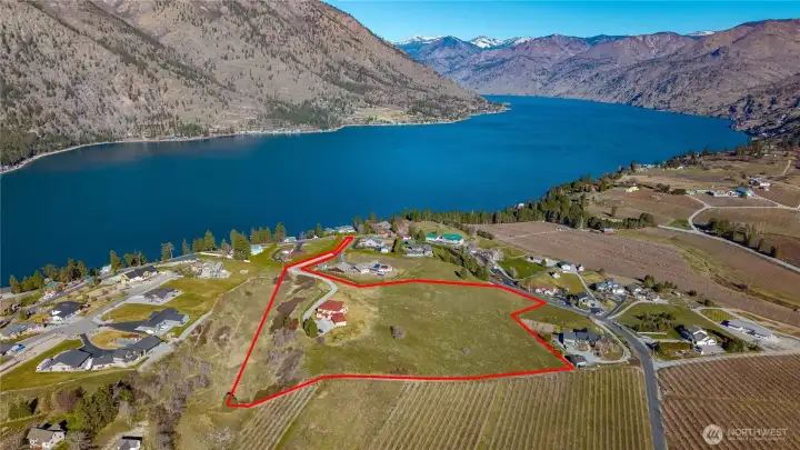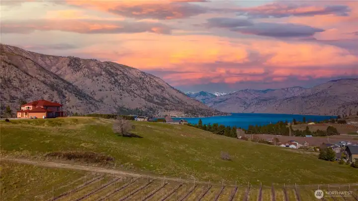 Welcome to Loop Avenue Estate, where timeless Tuscan-inspired design meets the breathtaking beauty of Lake Chelan. Set on 9.56 acres, with irrigation covering the landscaped areas, along the desirable Manson Loop, this exceptional property captures sweeping, panoramic views of Lake Chelan, Slide Ridge, the Sawtooth Mountains, Dry Lake, and beyond. The home offers 3 bedrooms plus a versatile office or guest suite, along with 5.5 baths, all thoughtfully designed with comfort and elegance in mind. At the heart of the home is a gourmet, multi-chef kitchen featuring a gas cooktop, double baking ovens, wine storage, and an inviting breakfast nook that's perfect for gatherings, entertaining, and taking in the views. The expansive great room and formal dining area showcase soaring 22-foot ceilings and walls of windows that frame the stunning landscape, creating an ideal setting for hosting and everyday living. Upstairs, the primary suite provides a private retreat with elevated vistas. Outdoors, the acreage offers endless possibilities, whether you envision a vineyard, gardens, or open space to enjoy. A landscaper can add connections to expand the irrigation beyond the landscaped areas. The property is already wired for a pool, adding to its potential as a luxury full-time residence or an exceptional vacation getaway. A rare opportunity to embrace refined living and the coveted Lake Chelan lifestyle.