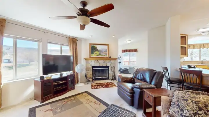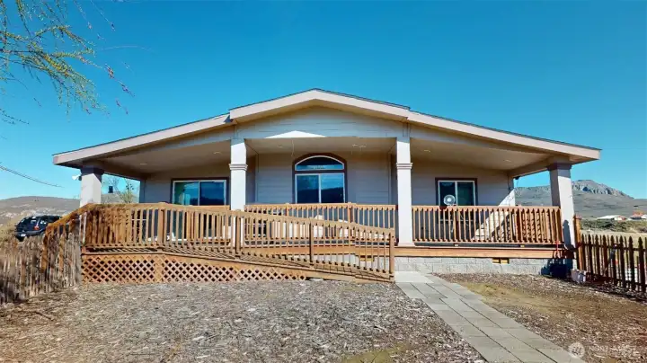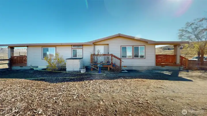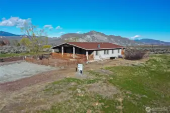 Perched on 3.66 acres overlooking the Okanogan Valley and Cascade Mountains, this well-appointed 2008 home offers the space, privacy, and functionality buyers are searching for. With 1,960 sq ft, 3 bedrooms, and 2 bathrooms, the home features an open-concept layout designed for both everyday living and entertaining.The spacious primary suite is a true retreat, complete with private access to a covered porch, walk-in closet, and a full ensuite featuring a soaking tub, double vanity, and walk-in shower. The light-filled kitchen is enhanced by skylights, recessed lighting, and a center island with bar seating—flowing seamlessly into the inviting great room with a striking stone wood-burning fireplace.Step outside to enjoy the fully fenced yard, ideal for pets or gatherings, with direct access from the laundry/mudroom for added convenience.This property truly stands apart with its impressive 1,250 sq ft insulated shop—fully fenced and equipped with lighting, security system, and additional storage including a climate-controlled cargo container and a shed—offering exceptional flexibility for hobbies, business use, or equipment storage.Recent improvements include a new septic tank, adding peace of mind for future ownership.A rare opportunity to own acreage with views, usable land, and a turnkey shop setup—just minutes from Tonasket amenities while offering the privacy of country living.