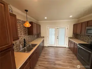 Okanogan, WA - Private location near all amenities within the city! 2018 Remodeled home features 4 bd/2.75 bath, open concept living/family room that leads to deck & remodeled kitchen with tiled backsplash, SS appliances and French doors to back patio. One main level Bedroom with full bathroom en-suite includes walk in closet. Main level Primary bedroom features unique built ins/desk area, en-suite access from hallway plus bathroom & French doors to backyard. Daylight basement includes oversized family room, full bathroom, utility room, laundry room, and two more bedrooms. Bar is plumbed and ready to go for entertainment! Backyard includes fire pit area, garden space, and patio. Detached shop. Alta Vista Irrigation. Seller to complete professional cleaning/repairs upon accepted offer. $379,000 H-3746/MLS2497153