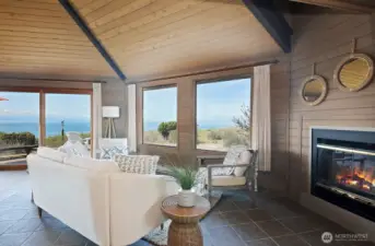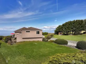 Envision this as your Whidbey Island sanctuary, weekend retreat, or VRBO! This remarkable two-parcel property boasts approximately 111 +/- feet of coveted westside waterfront, offering breathtaking panoramic views of the Strait of Juan de Fuca, the Olympic mountain range, and bustling shipping lanes. Enjoy a front-row seat to magnificent sunsets, the soothing sound of waves along the shore, and vibrant marine activity. Follow a private path to a scenic view deck, where you'll find yourself eye level with soaring eagles and endless vistas. The home, a classic Yonkman remodel from 1986, features timeless elements like tongue-and-groove ceilings, expansive picture windows, a Sub-Zero refrigerator, and quartz countertops. Upstairs, you'll find two primary bedrooms, while a third bedroom is conveniently located on the main floor. The versatile loft can be transformed into an office, gym, or creative studio. The spacious two-car garage includes an EV charger just outside the garage. Set on half an acre, with an additional lot featuring a 3-bedroom site registration, this property is part of the desirable Sierra Club beach community, providing beach access, a summertime pool, and a clubhouse.
