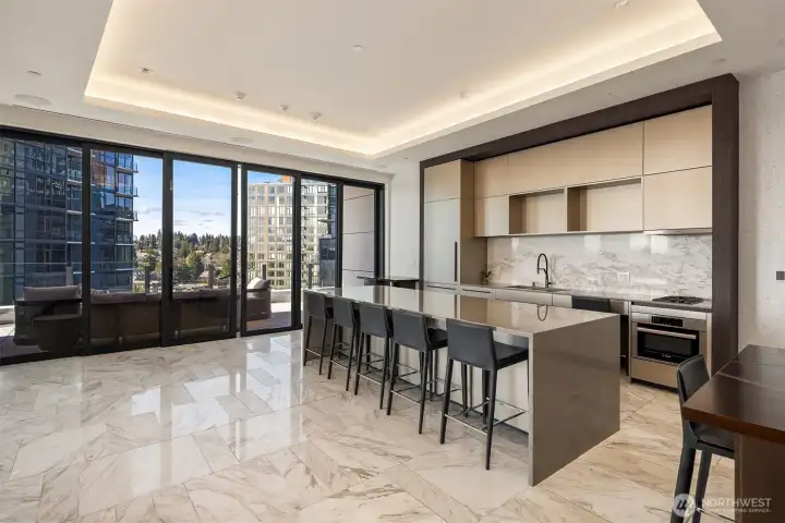 Luxury, light, location & iconic views in architecturally stunning Avenue Estates. Avenue is redefining urban sophistication in a dream location just steps to Bellevue’s world-class shopping & dining district. Unit 1701 is a contemporary vision with floor-to-ceiling windows framing spectacular southwestern views of Lake Washington, the Seattle city skyline and Olympic Mountains. The light-filled, 1,716 square foot open floor plan is centered around the view with an Ernestomeda-crafted gourmet kitchen providing ample storage and high-end appliances. Two view bedroom suites boast walk-in closets and spa-like baths with materials reflecting the beauty of the Pacific Northwest. The wrap-around deck provides a stellar perch for soaking in sunshine and sunsets. Gorgeous common areas with lounges, decks, kitchen, state-of-the-art fitness room, and dog area. Two parking spots in the secure garage (one with EV charger) plus a coveted storage unit. An exciting, comfortable lifestyle awaits at Avenue Belleuve.