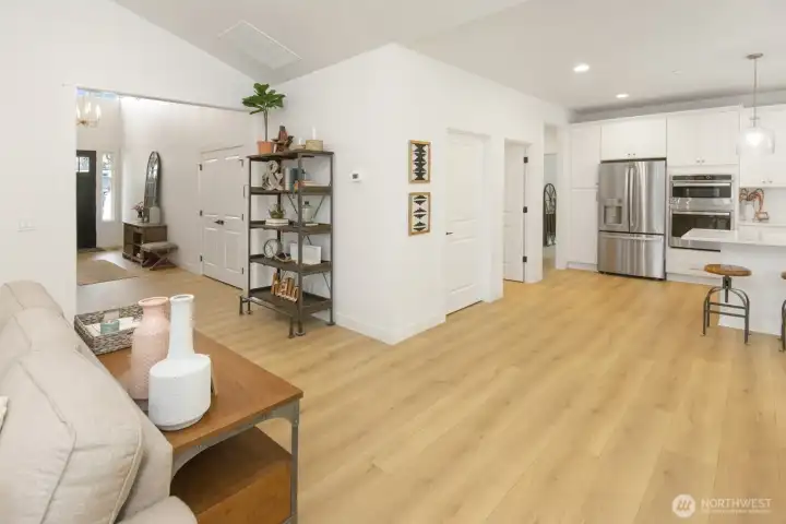 Zetterberg Custom Homes proudly presents its newest 5-lot community in Pierce County, showcasing over 50 years of trusted craftsmanship. Lot 5 features a beautifully designed 2,200 sq ft single-level rambler offering comfortable and functional living. Grand entry hall w/ custom beams, Dual chandeliers, simulated hardwood throughout hall & main living areas. The open great room flows seamlessly into a real cook’s kitchen with all the appliances: Smooth glass top electric range with oven number one, Double wall oven / microwave combination, Dishwasher, Refrigerator with filtered ice & water, creating an ideal space. This 3-bedroom, 2-bath home showcases Zetterberg’s signature attention to detail with white cabinetry, a handcrafted range hood, solid surface countertops, and carefully selected finishes throughout.Very Large mudroom with built in cabinetry, and wall feature mudroom bench and coat hooks off of the garage. A spacious 3-car garage that is fully taped and painted with upgraded insulated garage doors. Covered outdoor living (pre-wired for outdoor ceiling heater) area complete this home, offering the perfect blend of quality, comfort, and style in a limited-release community. Fully Fenced rear yards, front and rear yard landscaping with front yard irrigation included. Septic drainfield is on a separate tract which makes your yard completely usable. This home delivers the perfect turnkey upgraded blend of comfort, craftsmanship, and timeless appeal.