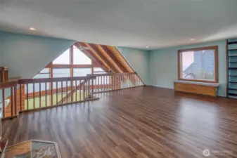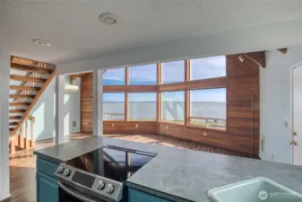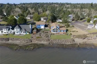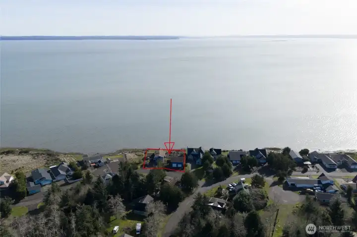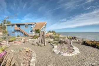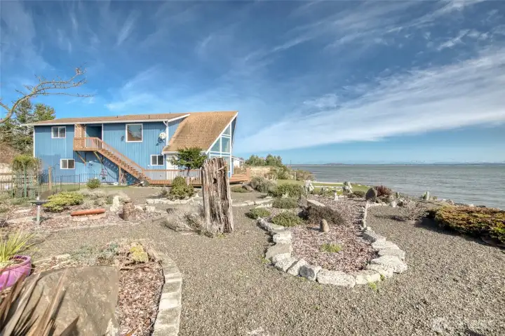 Spectacular.. that is the only way to describe the view from this home. Sitting on a double lot right on the bay this home has it all, Panoramic views of the bay and mountains, large gardens to sit in and enjoy the abundant wildlife that calls this area home. An Open plan living/dining and kitchen lead the eyes to the A frame windows and the bay that lies beyond. The Primary suite and 2nd bedroom are on the main floor with sliding doors leading out front. Upstairs has a large Family room with a fireplace, bathroom and 2 additional bedrooms and a separate entry door. The Home has a 2 car garage and the Detached Garage/shop has lots of room for the toys and an unfinished space above would make an excellent apartment/ Office area. This home is in a very desirable neighborhood on the bay with the luxury of a double lot it's not to be missed.