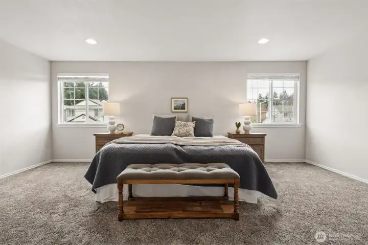 Welcome to your gorgeous new home! Conveniently located in NE Lacey near I-5, this stunning 5 bed, 2.5 bath home offers over 2,600 square feet of thoughtfully designed living space. Situated on a desirable corner lot in a quiet, established neighborhood. The main floor includes a spacious living room with dining space, a large eat-in kitchen and family room, a half bathroom, utility room, and a main floor bedroom. Upstairs, you'll find a gigantic, oversized primary suite with 5 pc bath and walk in closet, as well as 3 additional, large bedrooms, and another full bathroom. Close to shopping, restaurants, schools, JBLM and more! Don't miss this one!