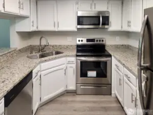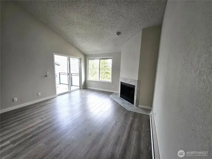 Fantastic updated top floor condo featuring vaulted ceilings, stainless steel appliances, granite countertops, and a cozy wood burning fireplace, perfect for those rainy Washington winters. Enjoy new LVP flooring throughout the entire unit. The private deck offers additional storage and is accessible from both the primary bedroom and the living area. Being a top floor unit means no neighbors above, providing added peace and quiet. Ideally located just minutes from I-405, top rated restaurants, grocery stores, and a variety of shopping options. This home is truly move in ready!