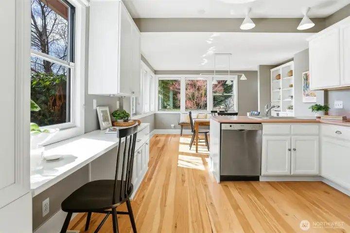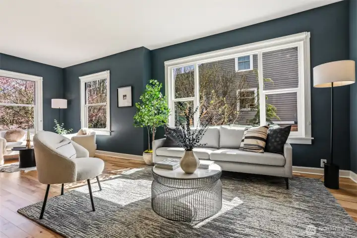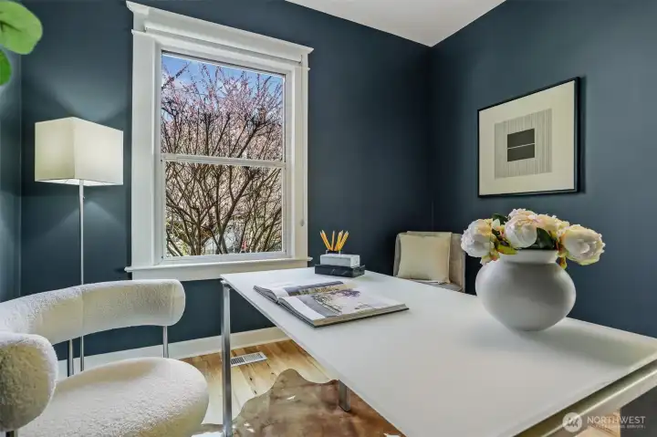 Behold the cherry blossoms! Stylish Craftsman-era home on an idyllic Ballard street. Great light, flow, and super clean. The generous kitchen and dining space is perfect for hosting all of your special occasions. From here step out to the lush back yard sanctuary that invites lounging on a summer evening. Four convenient bedrooms above ground offer flexibility, including a private west-facing balcony upstairs. There’s plenty of room to spread out, and the unfinished basement provides loads of storage. Updates include newer furnace, windows, water heater, designer paint, gorgeous hardwood floors, and more! This location can’t be beat–you’re in the desirable NW schools cluster, right near Shilshole, the Locks, Golden Gardens Beach park, excellent cafes, and downtown Ballard, too. You’re going to love living here!