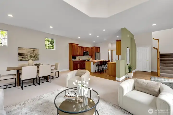 Soaring ceilings and large windows let in abundant light