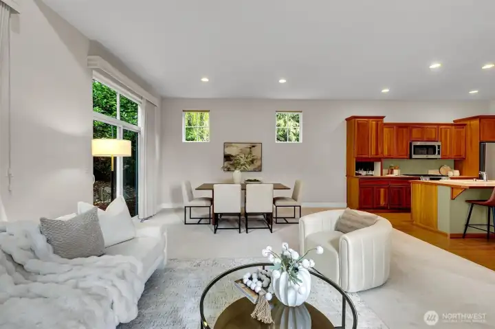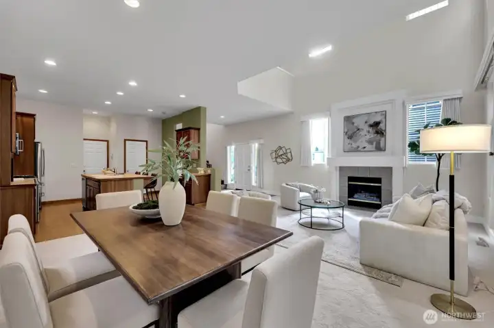 Ideally situated in a corner lot in the Saratoga Community in Woodridge, this beautifully designed home offers comfort, location and function. Dramatic soaring ceilings and expansive windows fill the home with natural light, creating a bright and inviting ambiance throughout. New carpet in the main floor adds a fresh comfortable touch, while AC ensures you will stay cool all summer. The open concept kitchen is designed for everyday living and entertaining, featuring a large island, walk in pantry, office nook and premium Bosch SS appliances -flowing seamlessly into the spacious dining area. Step outside into your own private backyard retreat - perfect for relaxing or hosting guests. Upstairs, a spacious loft/flex area overlooks the LR, adding versatility and an open feel. Retreat to the primary suite featuring a five-piece ensuite bath and a walk in closet. Two additional bedrooms complete the upper level, including one with a private balcony, awning and territorial views - perfect for unwinding at the end of the day. Nestled within the Saratoga community, residents enjoy a scenic, park-like central green space. Located in the highly acclaimed Woodridge Elementary, Chinook Middle, and Bellevue High School district. Enjoy unbeatable convenience with shopping, dining, Bellevue, and Factoria just minutes away. Easy access to major employers like Microsoft, T-Mobile, Amazon, and Meta, along with nearby I-90, I-405, and light rail options, makes commuting effortless.